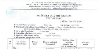 Kết quả kiểm nghiệm nước máy ngày 8/11/2018