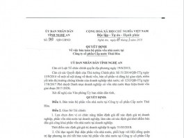 QUYẾT ĐỊNH VỀ VIỆC BÁN TOÀN BỘ VỐN CỔ PHẦN NHÀ NƯỚC TẠI CÔNG TY CỔ PHẦN CẤP NƯỚC THÁI HÒA.